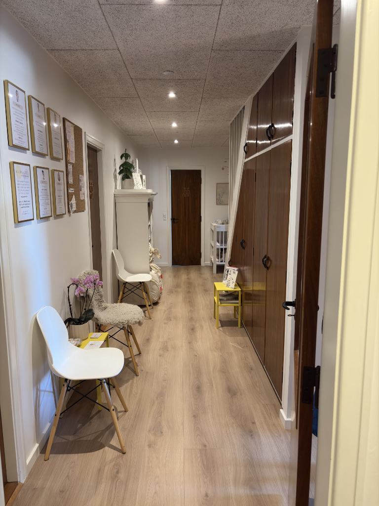 Jeg byder dig velkommen i et velfungerende og roligt klinikfællesskabt i det nordlige Aarhus, Løgten, hvor jeg deler klinikken med to jordemødre, en psykolog og en yogainstruktør.
